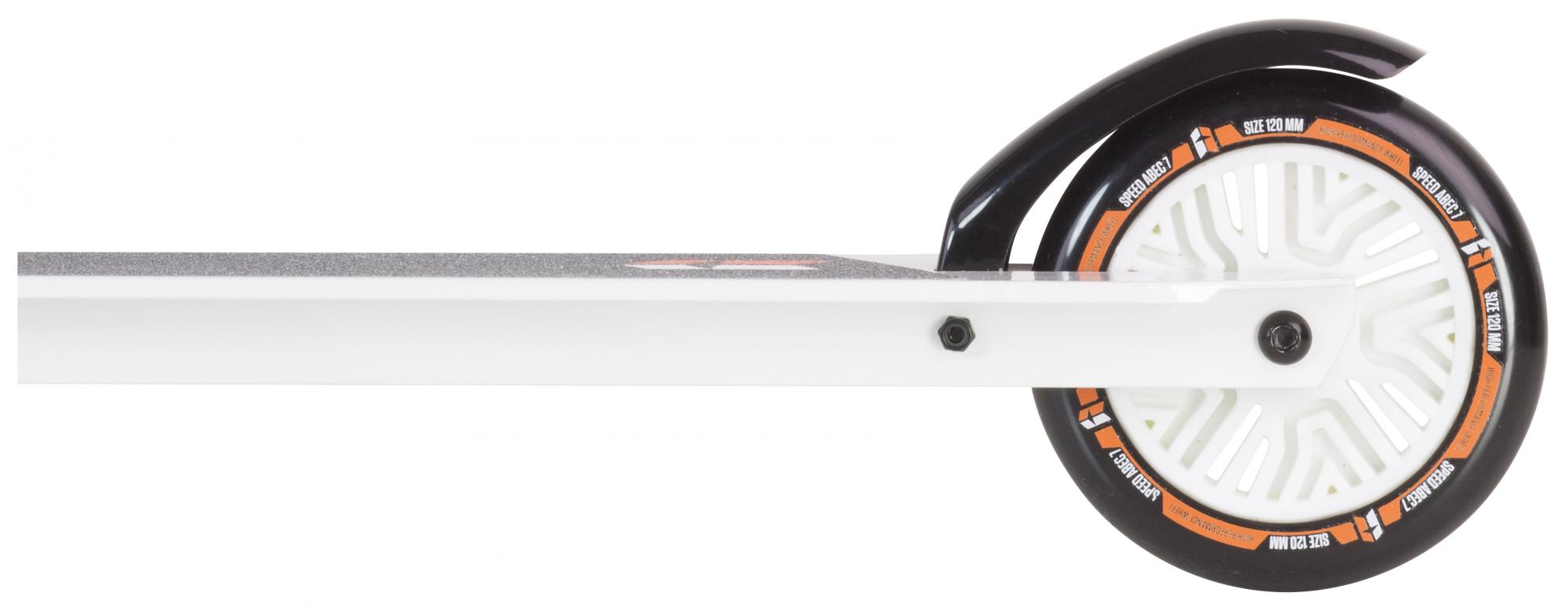 Koloběžka je vyrobená z pevné hliníkovo-ocelové konstrukce. Díky odlehčené konstrukci je koloběžka lehká a jízda na ní snadná. Kolečka jsou vyrobena z polyuretanu, který je velmi lehký, pevný a odolný. Průměr koleček je 120 mm.